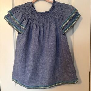 Vineyard Vines Linen Blue Top with Embroidered Aqua & Yellow Accents Size Large