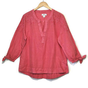 Vineyard Vines Linen Cotton Tunic Top Embroidered Mandarin Collar "3/4 Sleeve XL