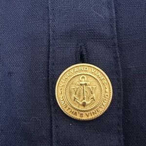 Vineyard Vines Linen Gold Button Front Shift Dress Nautical Navy Size Medium M