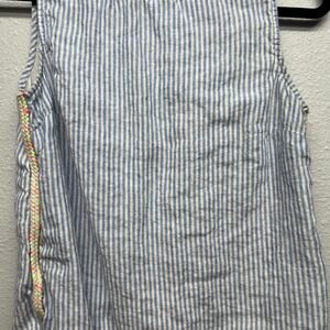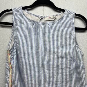 Vineyard Vines women's striped top in blue & white. Round neck. Sleeveless. Keyhole in back. Vertical knit accent at the sides. Lined. Natural & breathable fabric. In good used condition. No stains, tears or holes.