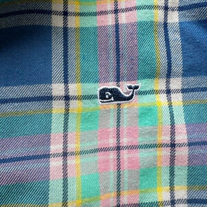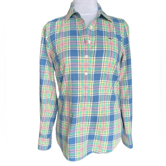 Vineyard Vines Little River Plaid Popover Shirt Women’s Size 0 Pink Green Blue