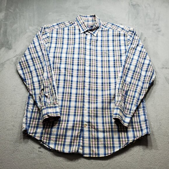 Vineyard Vines Long Sleeve Button Down Plaid Shirt Blue Yellow Pink Men Sz L