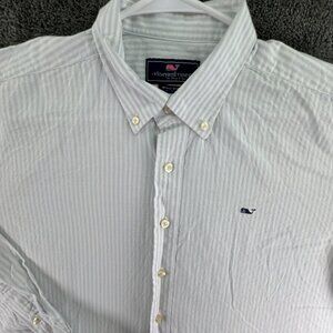 Vineyard Vines Long Sleeve Button Up Mens Striped Blue White XL Whale Shirt