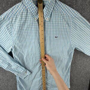 Vineyard Vines Long Sleeve Button Up Shirt Cotton Blue Check Small Slim Whale