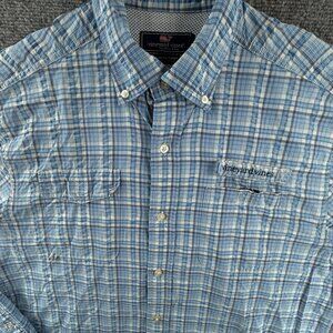 Vineyard Vines Long Sleeve Harbor Shirt Blue Plaid Fishing Hiking Nylon Medium
