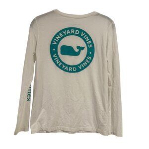 Vineyard Vines Long Sleeve White Tee with Teal Green Print Size L