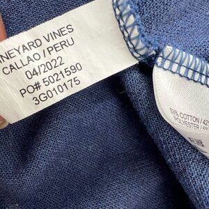 Elevate your wardrobe with this Vineyard Vines polo. Crafted from a comfortable cotton blend, this shirt combines casual style with superior comfort. The classic blue hue and iconic whale logo make it a versatile addition to any outfit. Its medium size ensures a fit that is not only stylish but also comfortable for any occasion.