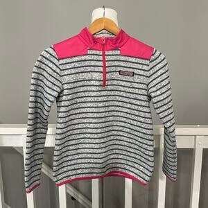 Vineyard Vines Martha's Vineyard Heather Blue Stripe / Pink Quarter Zip Pullover