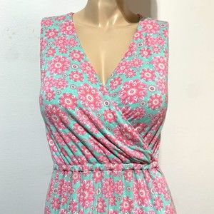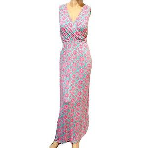 Vineyard Vines Maxi Dress Faux Wrap Size S Small Elastic Waist Blue Pink Floral
