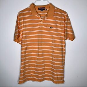 Vineyard Vines Medium Tangerine-White Striped Short Sleeve Polo Shirt