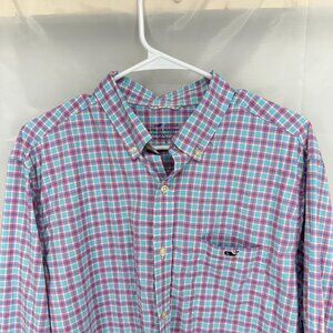 Vineyard Vines Men L OTG Performance Shirt Long Sleeve Button Down Pink Plaid