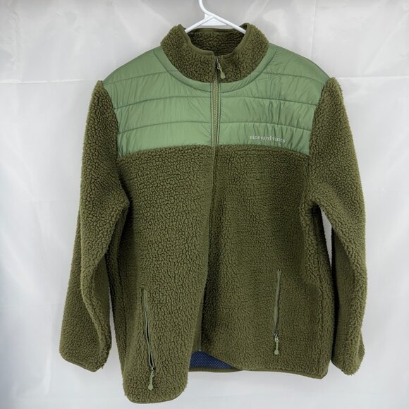 Vineyard Vines Men L Sherpa Fleece Jacket Full Zip Olive Green Soft Long Sleeve