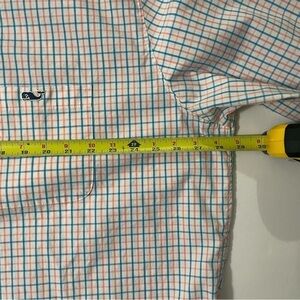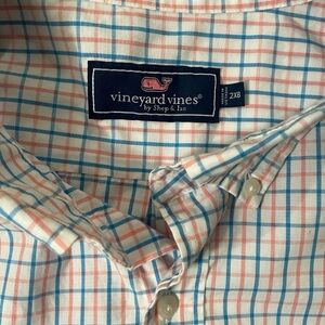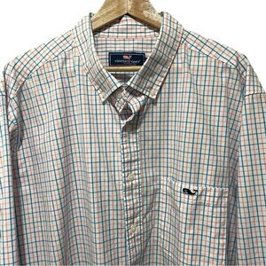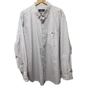 Elevate your style with this Vineyard Vines Men’s Performance Shirt in a size 2XB. Featuring a vibrant blue, pink, and white pattern, this shirt is made from a lightweight, breathable nylon blend designed to keep you cool and comfortable all day long. Classic button-down style with the iconic whale logo on the chest. Perfect for the office, vacation, or casual wear.