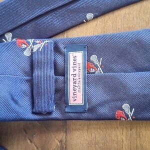 Vineyard Vines Men Woven Silk Crossed LAX LaCrosse Sticks Neck Tie Navy Blue