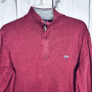 Vineyard Vines Mens 1/4 Zip Long Sleeve Mock Neck Pullover Sweater Burgundy Sz M