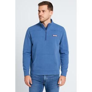 Vineyard Vines quarter zip, men's pullover, blue sweatshirt, cotton pullover, medium, casual sweater, embroidered logo, preppy wear, whale logo, front pocket pullover, 1/4 zip sweater