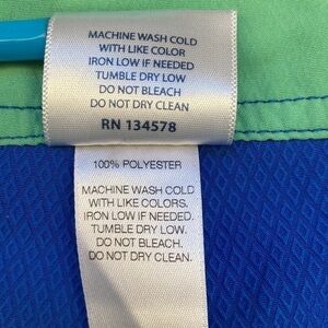 Excellent condition. Blue swim trunks. Green accent color inside. Logo on front and back. Velcro and tie closure. High quality shorts from a brand you can trust. Measurements in pictures.