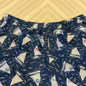 Vineyard Vines Men’s Blue Sailboats Bathing Suit. Lined. Made of polyester. Drawstring. Gently worn. Size L.