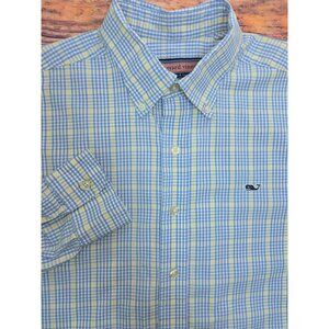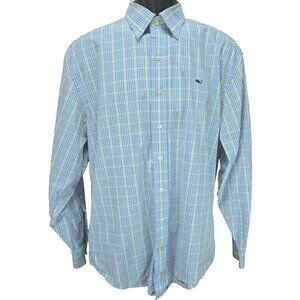 Vineyard Vines Mens Blue-Yellow Plaid Button Down Long Sleeve Whale Shirt Medium