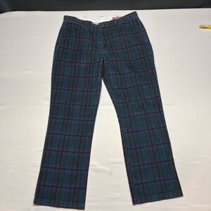 Vineyard Vines Mens Corduroy Plaid Tartan Trousers Pants 38x32 Retro Green Red