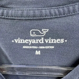 graphic tee Vineyard Vines cotton shirt men's casual navy blue tee medium size pocket tee summer shirt short sleeve crew neck breathable fabric casual wear made in Peru