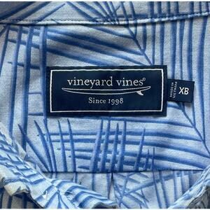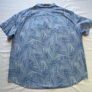 Excellent Pre-Owned Condition No Stains or Rips, Mens Vineyard Vines Blue/Dark Blue Hawaiian palm Floral Print Button Up Short Sleeve Shirt Size 1XB, features Cotton Spandex Stretch Fabric, Great Everyday Casual Oversized Resort Wear