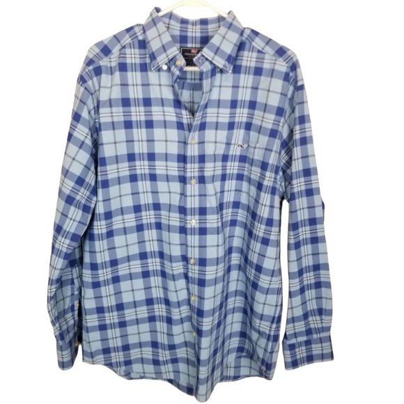 Vineyard Vines Mens L Blue Plaid Classic Fit Tucke
