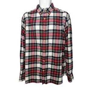 Vineyard Vines Men's Large Red Navy Plaid Flannel Long Sleeve Button Down