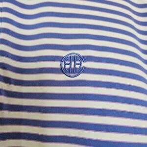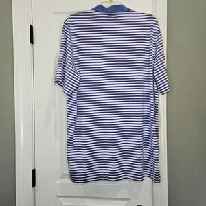 Vineyard Vines Men's Large Short Sleeve White, Blue & Pink Striped Performance Golf Polo Shirt