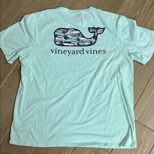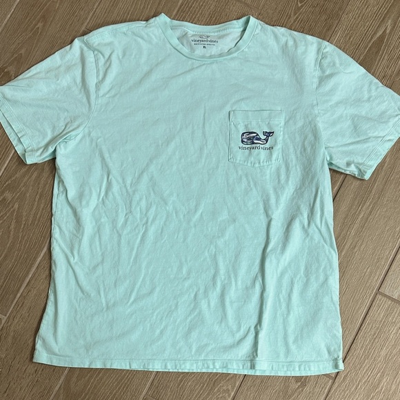 Vineyard Vines light green tee. Features classic logo on pocket. Ideal for everyday wear.