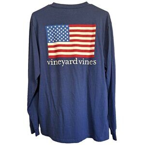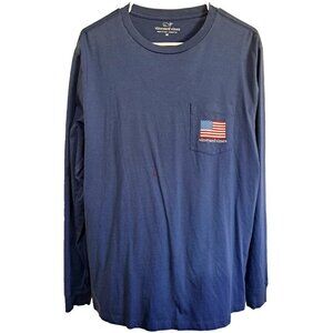 Vineyard Vines Men's M Blue Long Sleeve Pocket T-Shirt U.S. Flag Patriotic