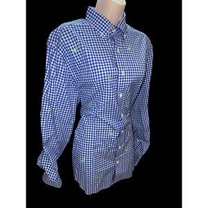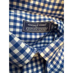 Vineyard Vines Mens MD Kentucky Derby Keeneland Blue Gingham Horseshoe Logo