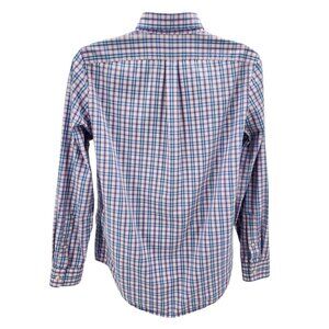 Vineyard Vines Mens Medium Whale Shirt Slim Fit Pink Aqua Blue Check Plaid Logo Button