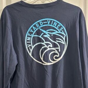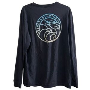 Vineyard Vines Men's Navy Blue Marlin Crest Long-Sleeve Pocket Tee Size L
