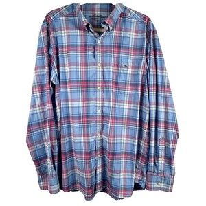 Vineyard Vines Men’s On The Go Performance L OTG Button Down Shirt Blue Red