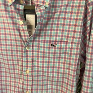 Vineyard Vines Men’s On the Go Nylon Classic Plaid Shirt in Neon Rosa XS NWT