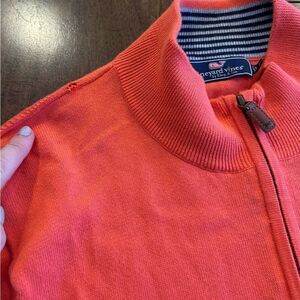 Vineyard Vines Men’s Orange Coral 100% Cotton Quarter Zip Sweater Size Large
