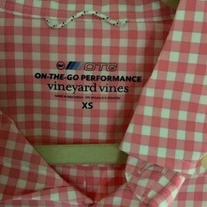 Classic button-down with a pink checkered pattern. Ideal for casual outings. Like-new condition
