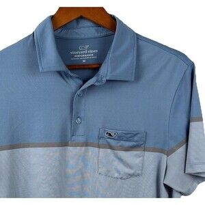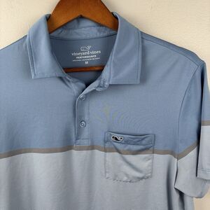 Vineyard Vines Mens Polo Medium Blue Two Tone Performance Stretch Whale
