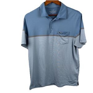 Vineyard Vines Men’s Polo Medium Blue Two Tone Performance Stretch Whale