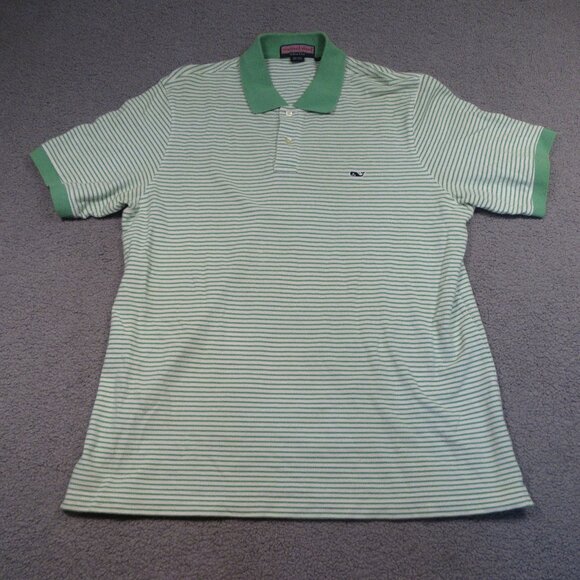 Vineyard Vines Men’s Polo Shirt – Green & White Stripes – Size Large – Shep & Ian Casual