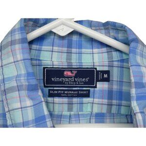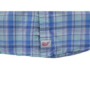 Vineyard Vines Mens Shirt Size M Blue Pink Plaid Slim Fit Murray Whale Preppy