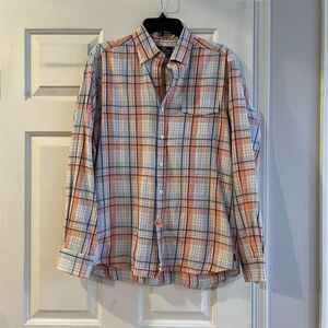 Elevate your casual wardrobe with this Vineyard Vines plaid button-up shirt. Crafted from soft, breathable cotton, this slim-fit shirt features a multicolor plaid pattern that adds a pop of style to any outfit. The long sleeves and classic button-down collar offer a timeless look, while the single chest pocket adds convenience. Perfect for spring outings, casual gatherings, or a relaxed day at the office, this shirt is versatile and stylish. In excellent pre-owned condition, it's ready to become a staple in your wardrobe.