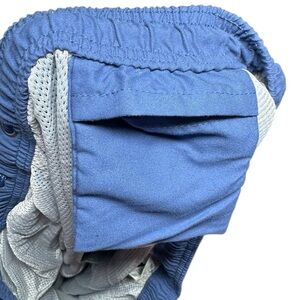 In good preowned condition. No rips, stains, tears or peeling. Very light discoloration on the inner lining hem of shorts.
