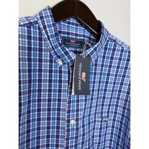 Vineyard Vines Men's Tattersall Classic Fit Poplin Button-Down Shirt Blue Sz XL