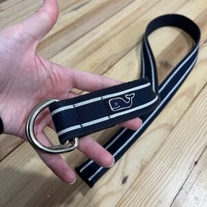 Vineyard Vines Men's XL D-Ring Belt Navy Blue White Striped Casual Whale