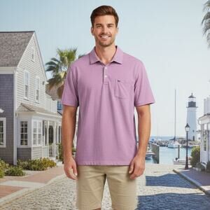 Stay cool and comfortable in this classic Edgartown Polo from Vineyard Vines. Made from a soft and stretchy Pima cotton blend, this shirt is designed for performance and style. The fine pink and blue stripes, combined with the signature whale logo on the chest pocket, create a timeless preppy look perfect for the golf course or a coastal weekend.