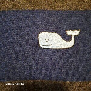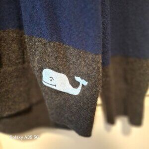 This soft, 100% cashmere sweater offers premium warmth and a polished look. The classic navy and brown stripes with the signature whale logo provide timeless style.