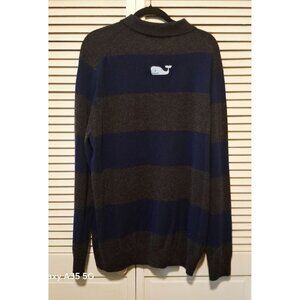 Vineyard Vines Mens XL Navy & Brown Striped 100% Cashmere Long Sleeve Polo Sweat