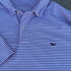 Vineyard Vines Men’s XL Performance Polo Shirt Red White Blue Stripe Golf Top
